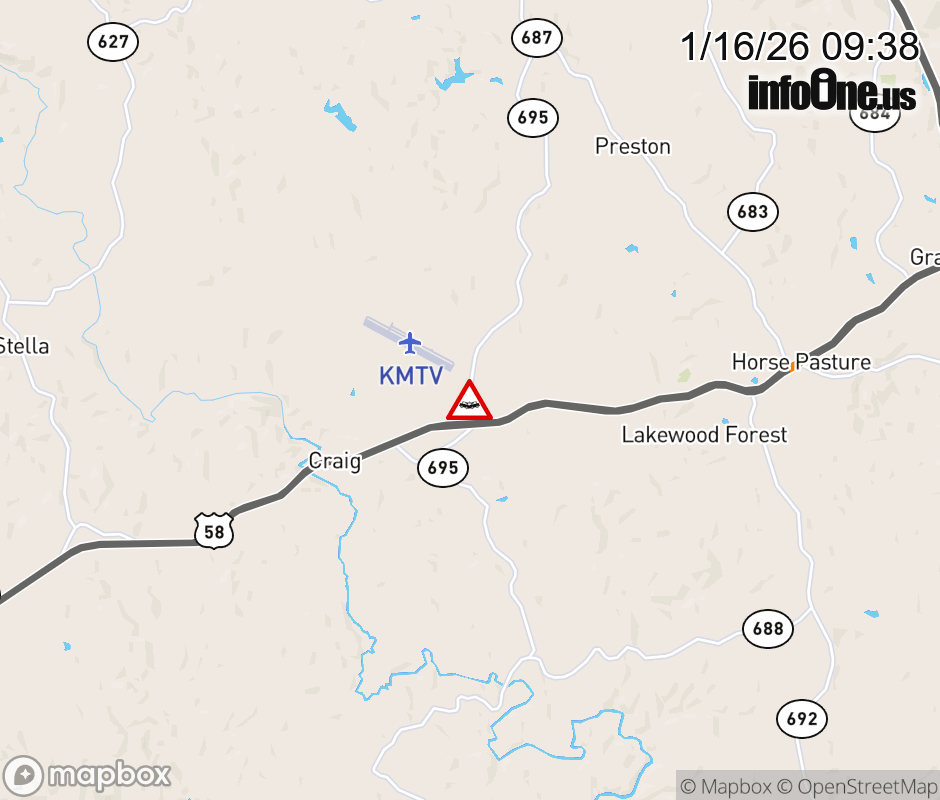 On Rt. 695 in the County of Henry, in the vicinity of A L Philpott Hwy; US-58W, motorists can expect delays due to a vehicle crash. All north lanes are closed. All south lanes are closed. ![]() |