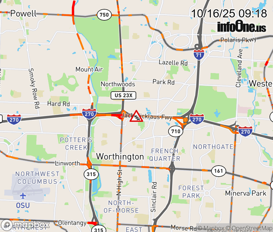 The left lane is blocked on I-270 East beyond US-23, due to repairs/maintenance. Updated: Thu 10/16/25 9:18 AM EDT ![]() Updated: Thu 10/16/25 9:18 AM EDT |