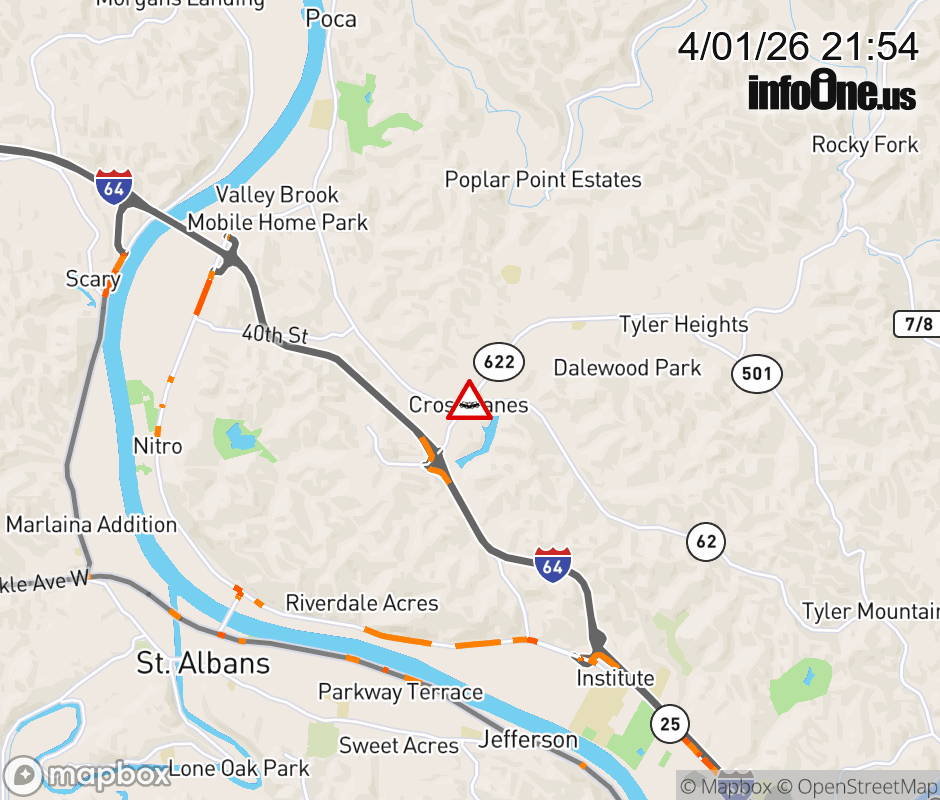 Vehicle Crash on WV-622 (5560 Big Tyler Rd, Cross Lanes). ![]() |