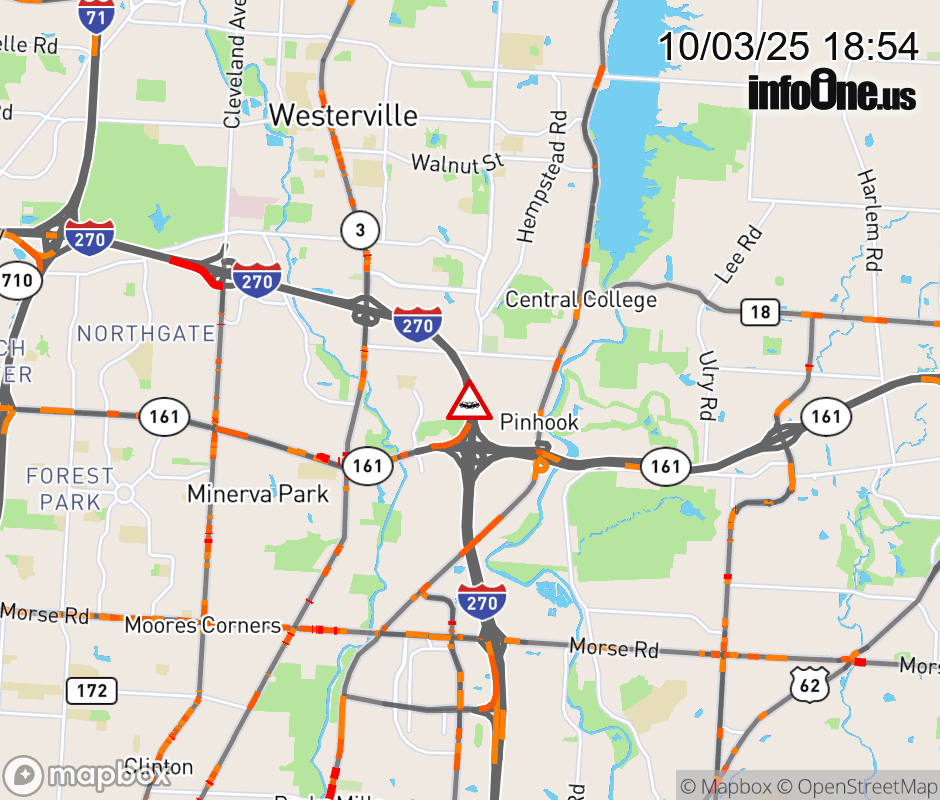 The right lane is blocked on I-270 South at SR-161/Dublin Granville Rd, due to a crash. Updated: Fri 10/3/25 6:54 PM EDT ![]() Updated: Fri 10/3/25 6:54 PM EDT |
