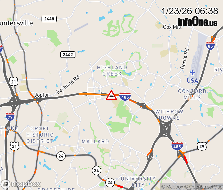 The three left lanes are closed before Exit 28 ( Mallard Creek Rd). ![]() |