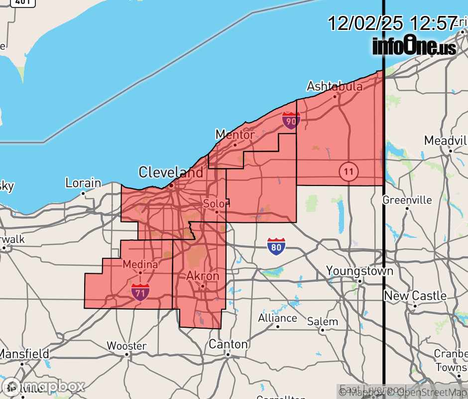 Canceled 12/2/25 3:46 PM Winter Weather Advisory issued December 2 at 12:56PM EST until December 2 at 7:00PM EST by NWS Cleveland OH * WHAT... Snow occurring. Additional snow accumulations of up to one inch. * WHERE... Portions of northeast Ohio. * WHEN... Until 7 PM EST this evening. * IMPACTS... Plan on slippery road conditions. The hazardous conditions could impact the evening commute. * ADDITIONAL DETAILS... Widespread accumulating snow is giving way to light to moderate lake effect snow showers that will push south off of Lake Erie through this afternoon. ![]() |
