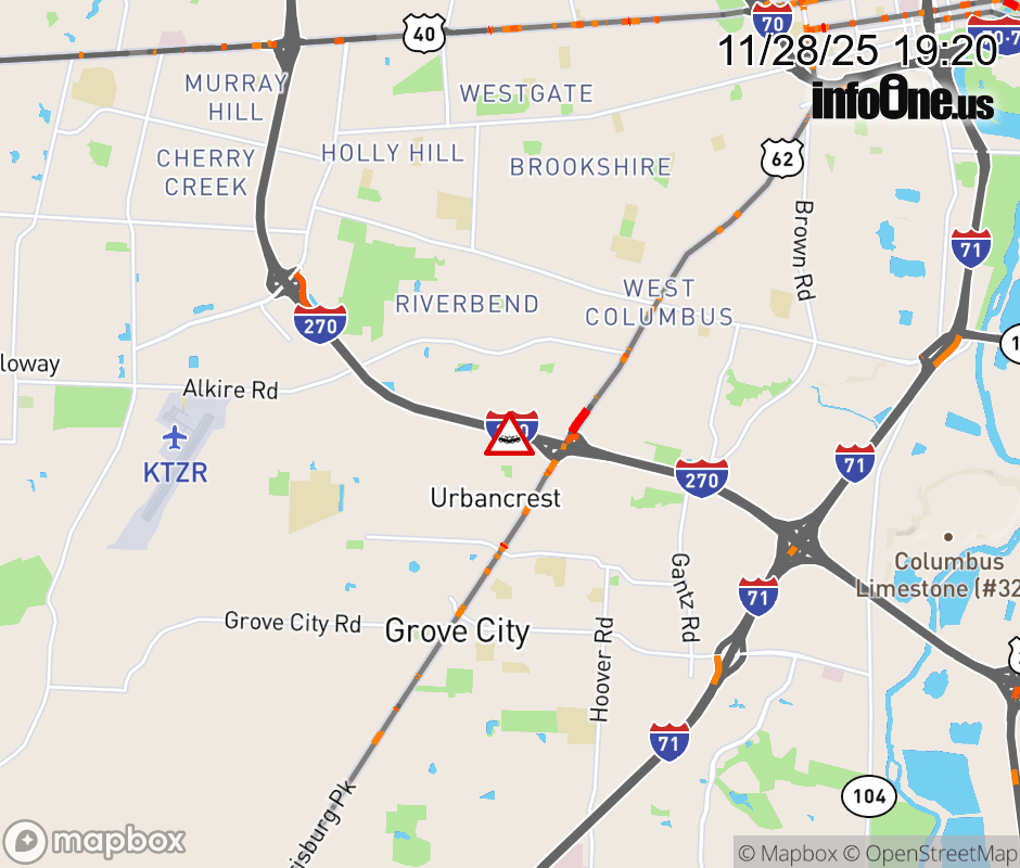 The right shoulder is blocked on I-270 East at US-62/SR-3, due to a crash. Updated: Fri 11/28/25 7:20 PM EST ![]() Updated: Fri 11/28/25 7:20 PM EST |