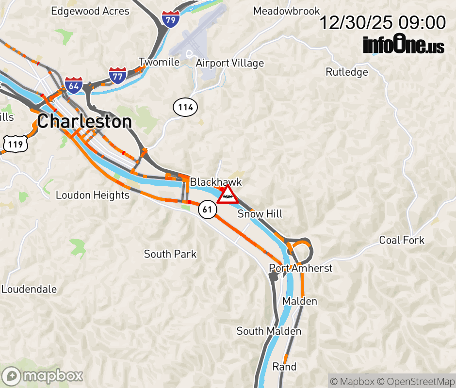 Vehicle Crash on US-60 (2900 Blk Kanawha Blvd @Daniel Boone Park area). The southbound road is closed. The northbound road is closed.Comments:Kanawha Blvd I-77N Exit 97 and I-77S Entrance Closed ![]() |