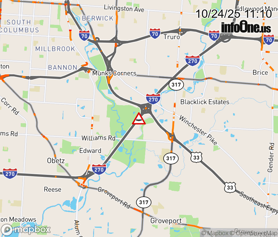 All lanes are closed on I-270 North at US-33, due to a crash. ![]() |