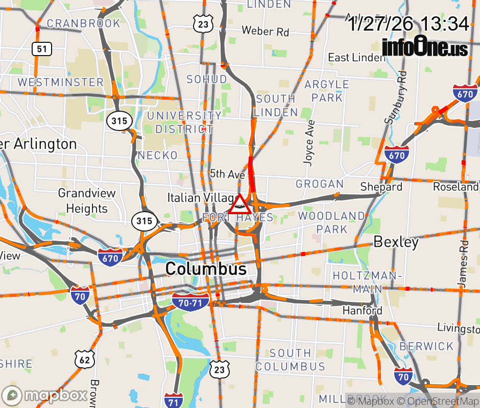 Expect lane closures on Ramp I-71 South to I-670 West, due to a crash. ![]() |