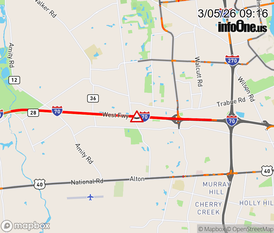 The right shoulder is closed on I-70 West beyond Hilliard-Rome Rd South, due to a crash. Updated: Thu 3/5/26 9:16 AM EST ![]() Updated: Thu 3/5/26 9:16 AM EST |