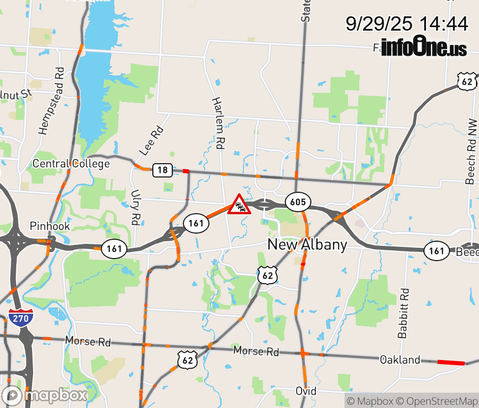 The right lane is blocked on SR-161 West beyond New Albany Rd, due to repairs/maintenance. ![]() |