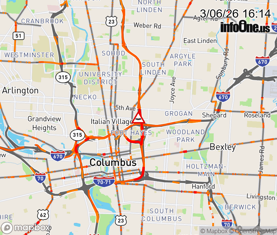 Expect lane closures on Ramp I-71 South to I-670 West, due to a crash. ![]() |