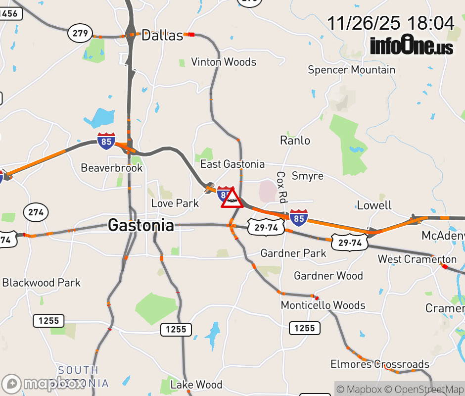 The left lane is closed at Exit 20 (NC 279). ![]() |
