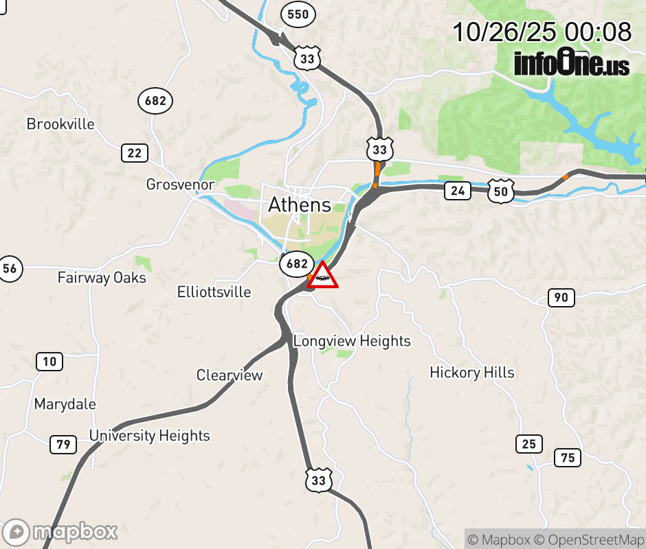 US-33 CLOSED in BOTH DIRECTIONS at SR-682 (MM: 15.8), due to crash. Use alternate route. ![]() |