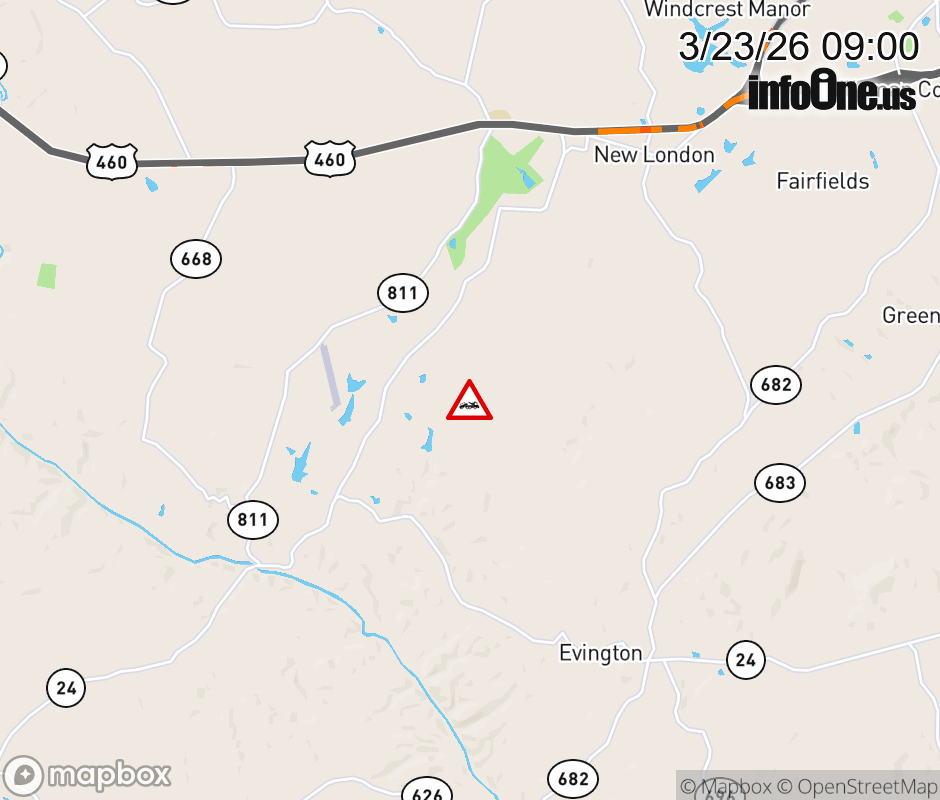 On Rt. 811 in the County of Campbell, in the vicinity of Evington Rd; Rt. 811N/S (Bedford County); County/City/Town Line: BEDFORD - CAMPBELL COUNTY LINE, motorists can expect delays due to a disabled vehicle. All east lanes are closed. Updated: Mon 3/23/26 9:00 AM EDT ![]() Updated: Mon 3/23/26 9:00 AM EDT |