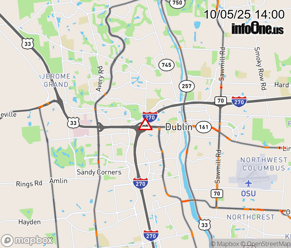 The right shoulder is blocked on Ramp I-270 North to US-33/SR-161 West, due to a disabled vehicle. ![]() |