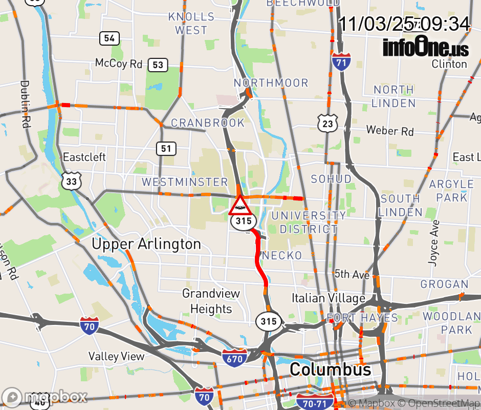 The 2 left lanes are blocked on SR-315 South beyond W Lane Ave, due to a crash. Updated: Mon 11/3/25 9:34 AM EST ![]() Updated: Mon 11/3/25 9:34 AM EST |