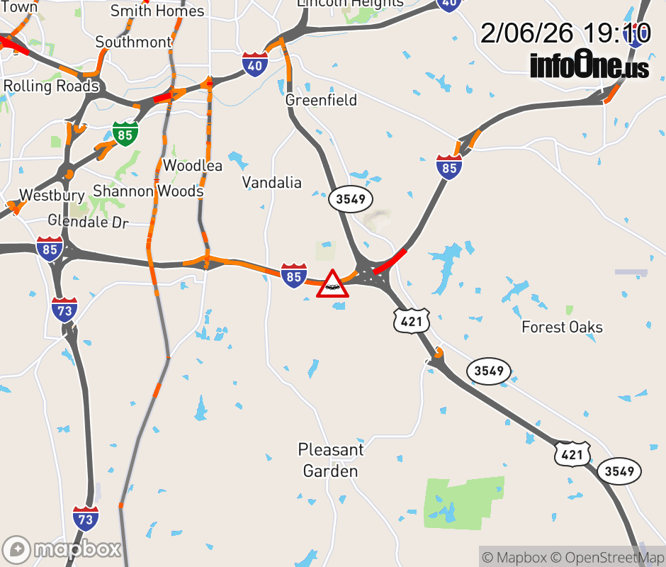 The ramp lane is narrowed at Exit 126A (US-421). Updated: Fri 2/6/26 7:10 PM EST ![]() Updated: Fri 2/6/26 7:10 PM EST |