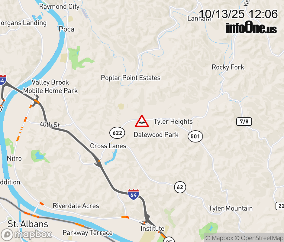 Vehicle Crash on WV-622 (5300 BLK of Big Tyler Rd) in Cross Lanes. ![]() |