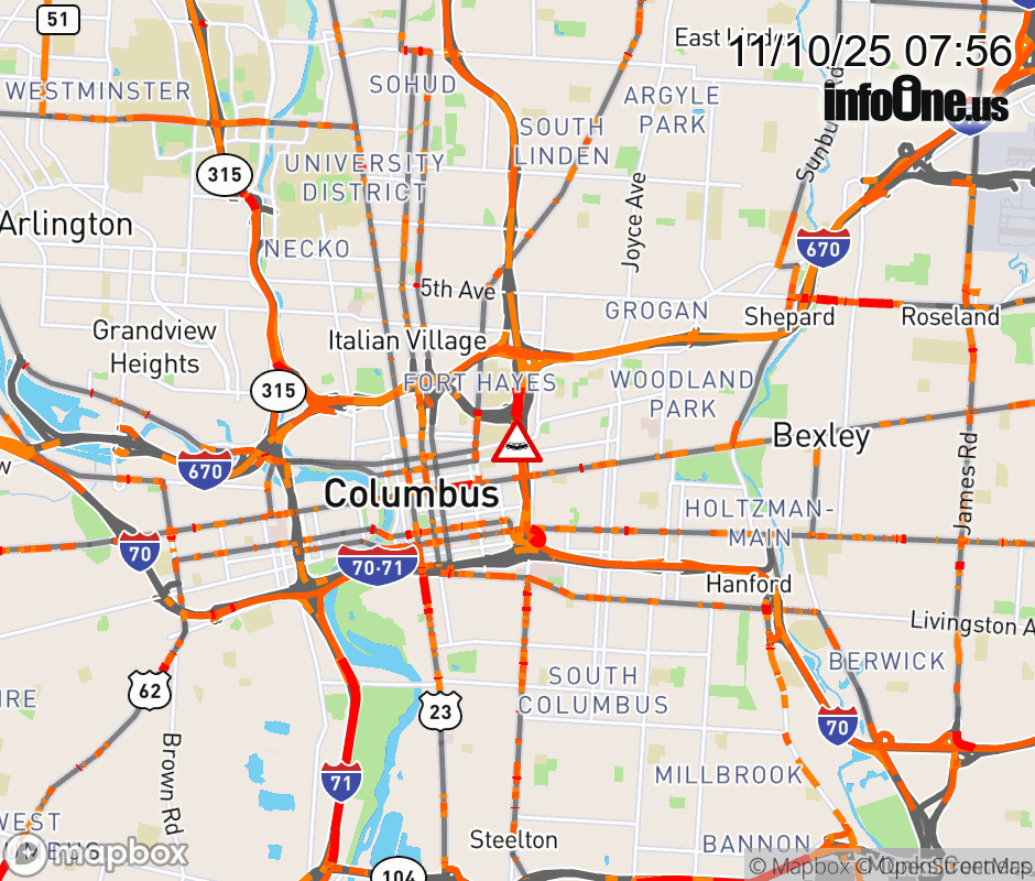 The left shoulder is blocked on I-71 South at US-40/Broad St, due to a crash. ![]() |