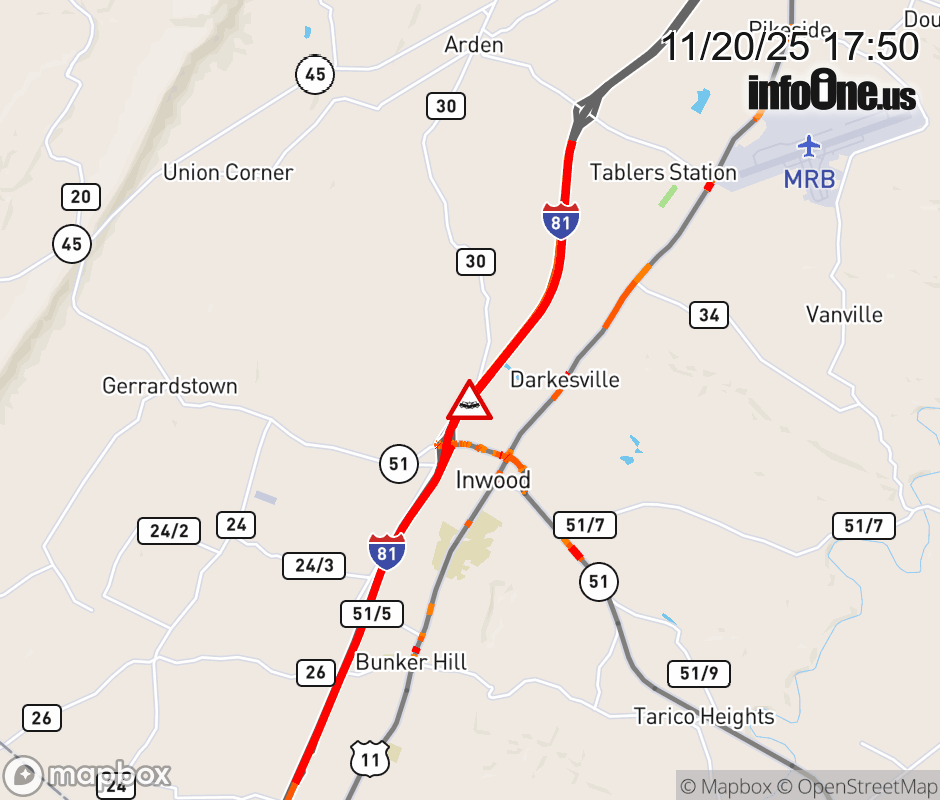 Canceled 11/20/25 6:42 PM Location: I-81 at MM 5.5, WV Accident.