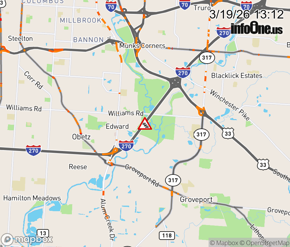 The right lane is blocked on I-270 North beyond Alum Creek Dr, due to repairs/maintenance. ![]() |