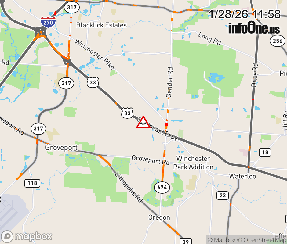 The right lane is blocked on US-33 West at Rager Rd, due to a crash. ![]() |
