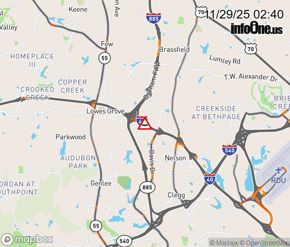 The left lane is closed at Exit 279 B (I-885/NC 885). ![]() |
