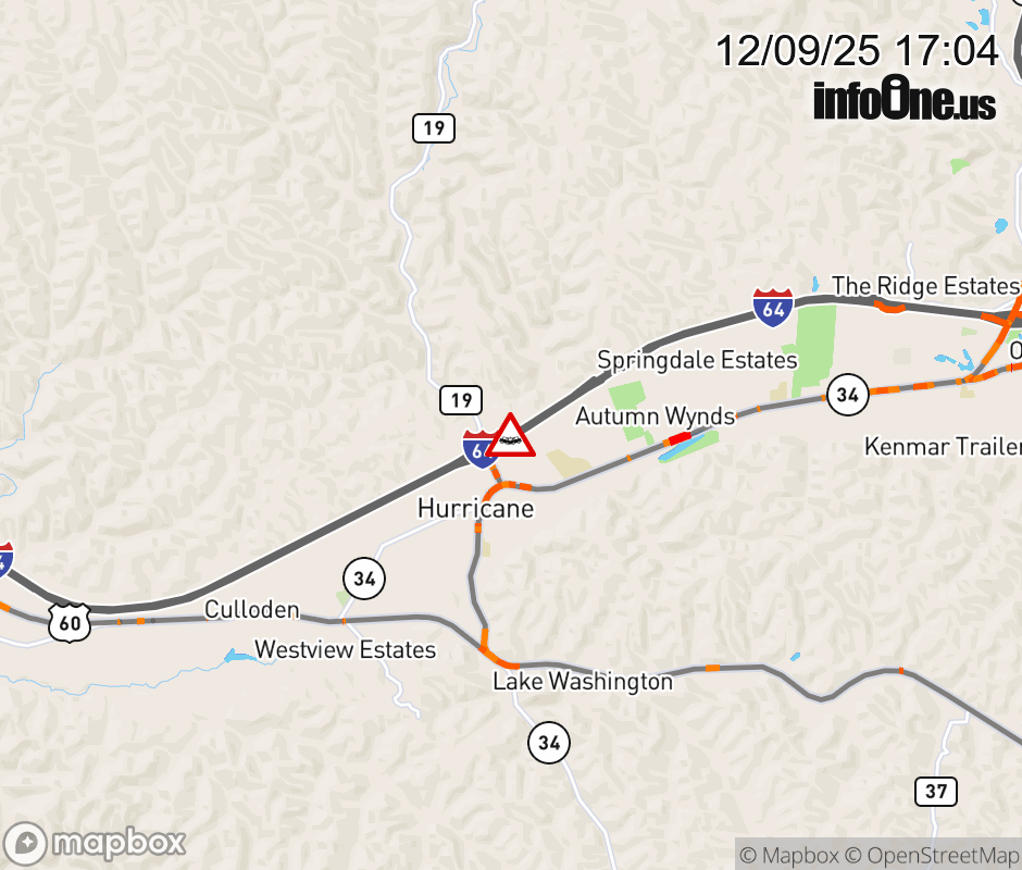 Canceled 12/9/25 7:32 PM Location: I-64 at MM 34.0, WV Accident.