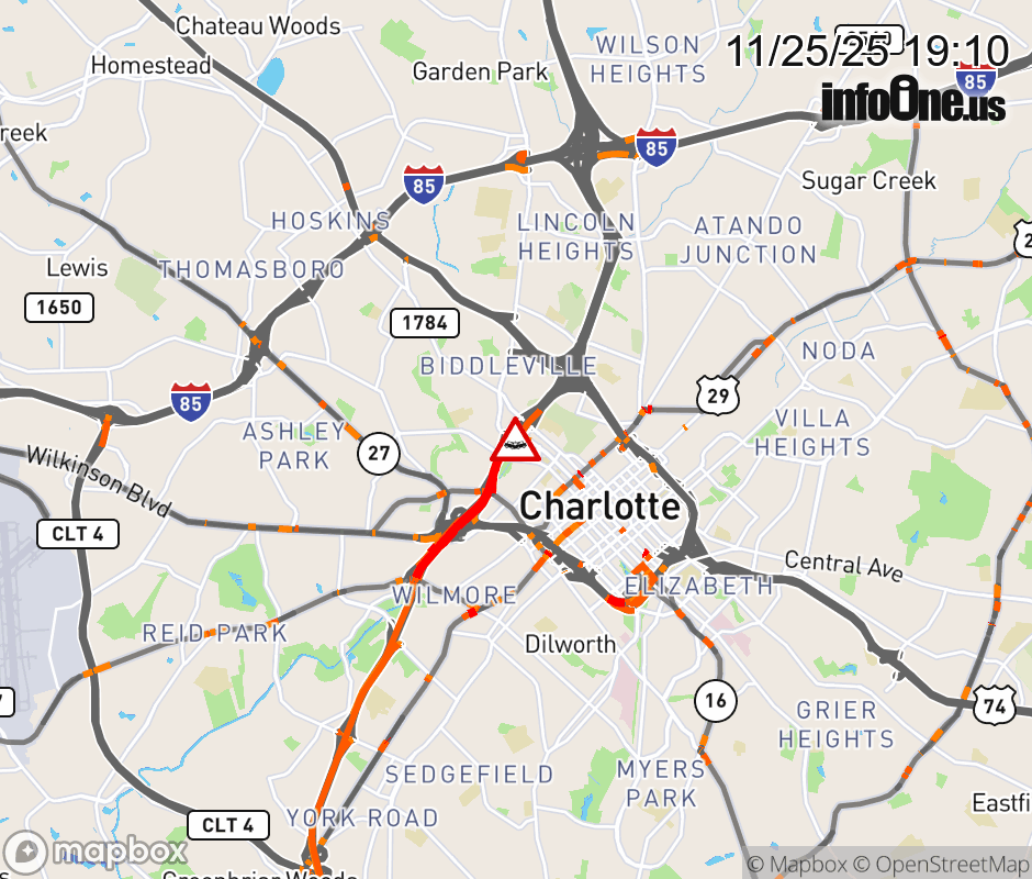 The left lane is closed after Exit 10 (W Trade St). Updated: Tue 11/25/25 7:10 PM EST ![]() Updated: Tue 11/25/25 7:10 PM EST |