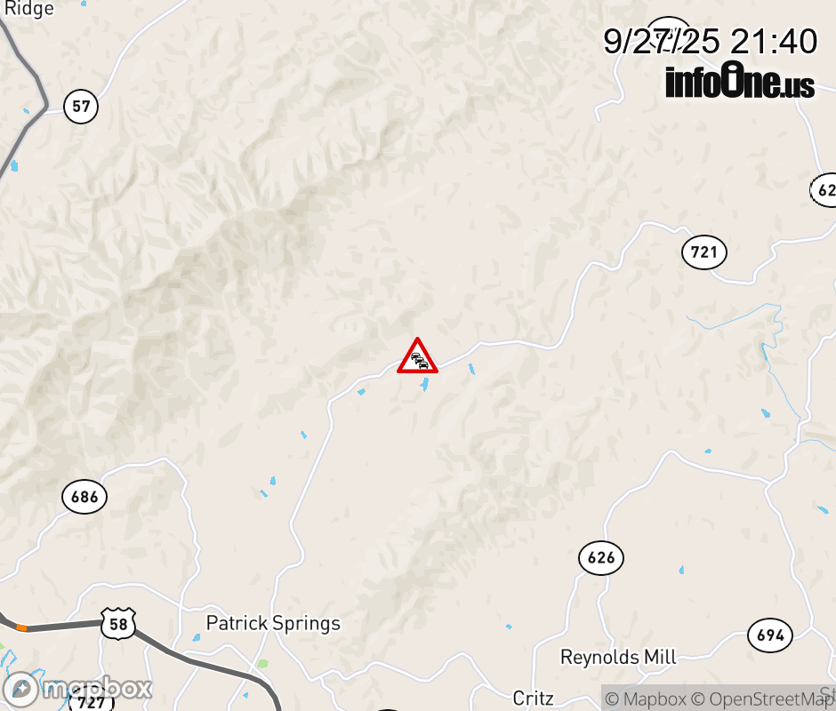 On Rt. 680 in the County of Patrick, in the vicinity of Spring Rd; Rt. 692E/W (Patrick County), motorists can expect delays due to weather. All north lanes are closed. All south lanes are closed. ![]() |