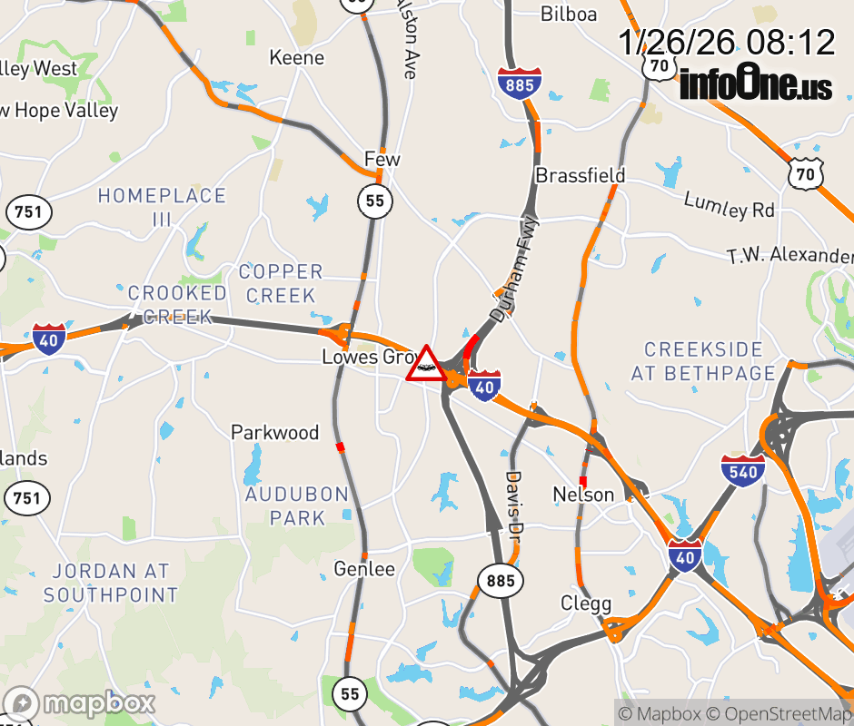 The 2 right lanes are closed at Exit 279A (NC 885). ![]() |
