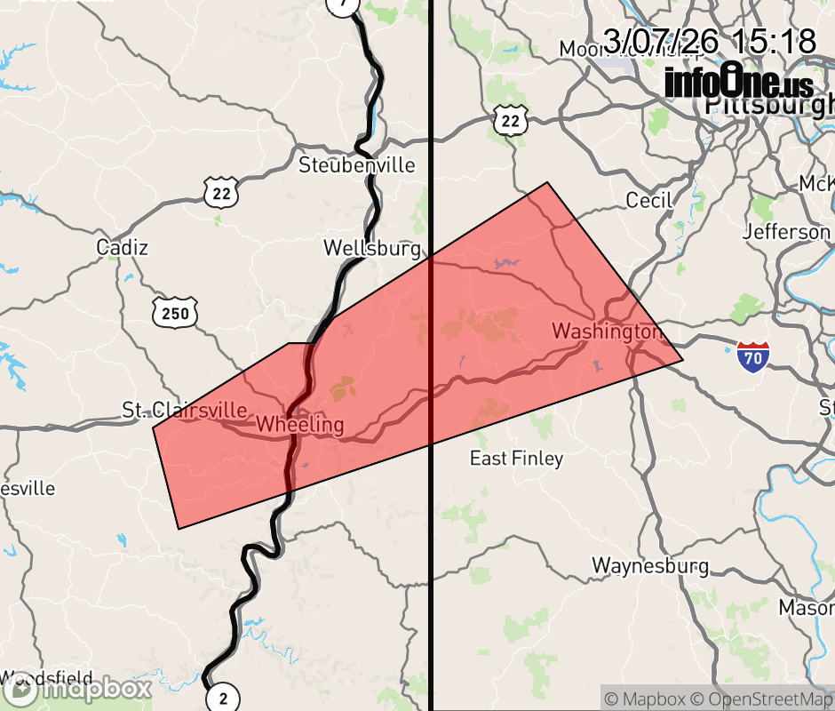 Canceled 3/7/26 3:27 PM Severe Thunderstorm Warning issued March 7 at 3:17PM EST until March 7 at 4:00PM EST by NWS Pittsburgh PA SVRPBZ The National Weather Service in Pittsburgh has issued a * Severe Thunderstorm Warning for... Northeastern Belmont County in east central Ohio... West Central Washington County in southwestern Pennsylvania... Brooke County in northern West Virginia... Marshall County in northern West Virginia... Ohio County in northern West Virginia... * Until 400 PM EST. * At 317 PM EST, a severe thunderstorm was located near Bellaire, moving northeast at 50 mph. HAZARD...60 mph wind gusts and quarter size hail. SOURCE...Radar indicated. IMPACT...Hail damage to vehicles is expected. Expect wind damage to roofs, siding, and trees. * Locations impacted include... Wheeling, Washington, Martins Ferry, St. Clairsville, Bellaire, Warwood, Bethlehem, West Liberty, Triadelphia, Avella, Clearview, Valley Grove, Wolfdale, McGovern, East Washington, McMechen, Bridgeport, Benwood, Yorkville and Bethany. ![]() |