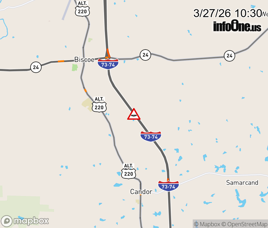 The left shoulder is closed 1-mile past Exit 49 (NC 27). Updated: Fri 3/27/26 10:30 AM EDT ![]() Updated: Fri 3/27/26 10:30 AM EDT |