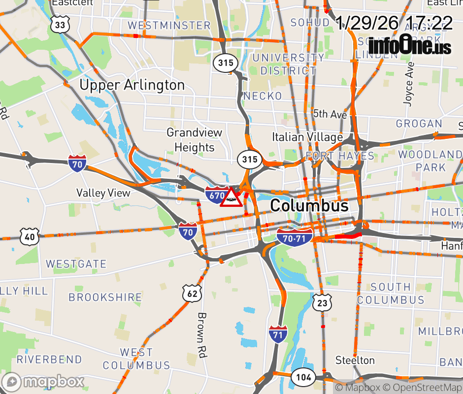 The right shoulder is blocked on Ramp I-670 East to US-33/SR-315 South, due to a crash. ![]() |