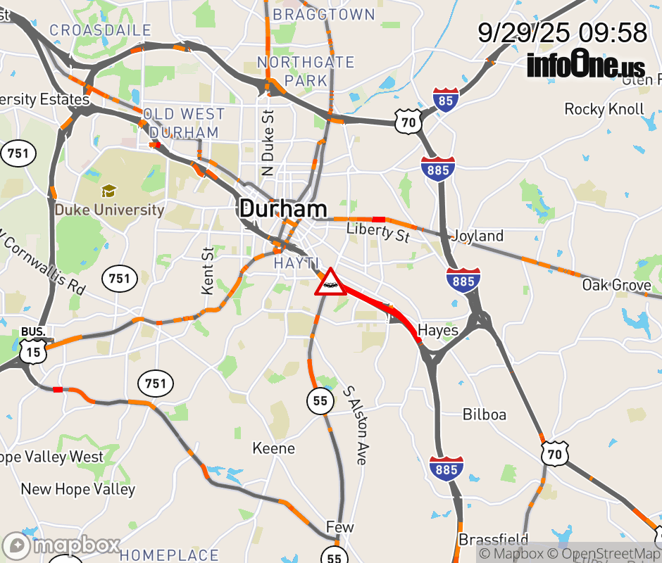 The right lane is closed at Exit 2 (NC 55). Updated: Mon 9/29/25 9:58 AM EDT ![]() Updated: Mon 9/29/25 9:58 AM EDT |