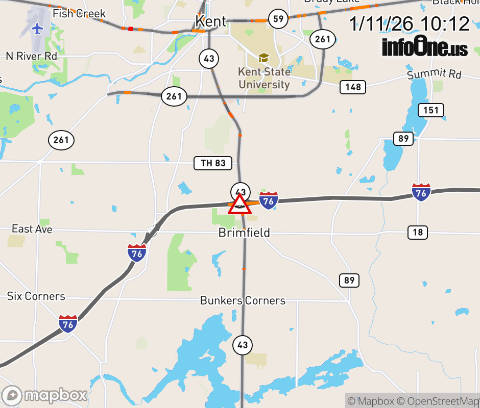 The left lane is blocked on I-76 East at SR-43, due to a crash. ![]() |