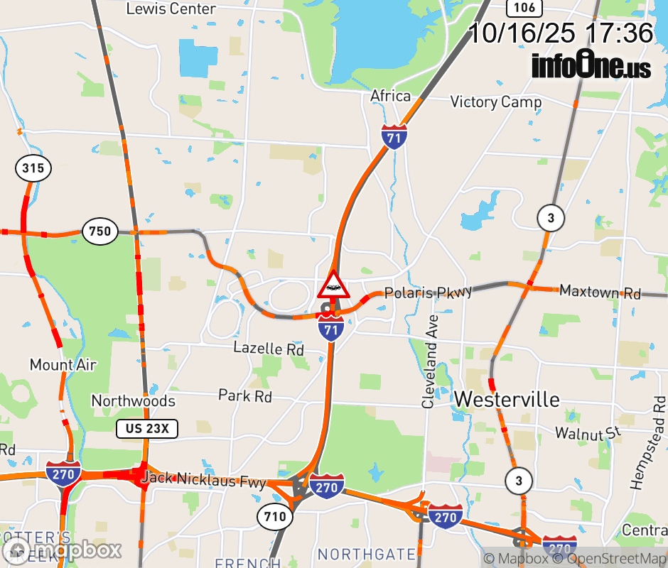 The right lane is blocked on I-71 South beyond Gemini Place To Polaris Pkwy, due to a crash. ![]() |