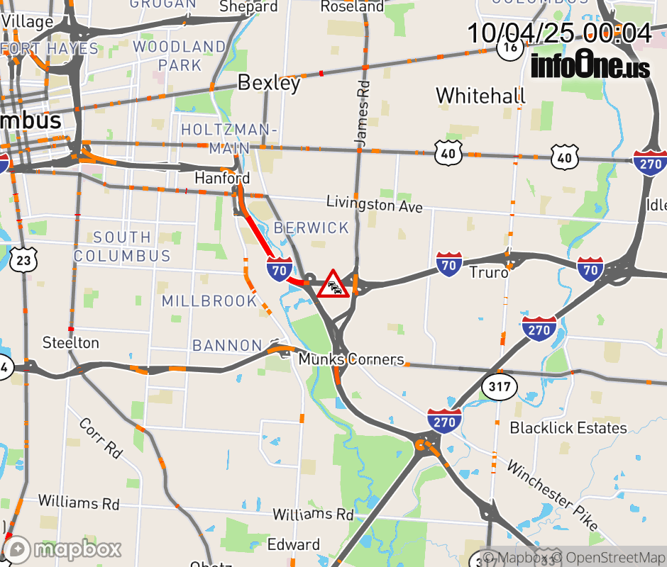 The 2 right lanes are blocked on I-70 West beyond US-33, due to repairs/maintenance. Updated: Sat 10/4/25 12:04 AM EDT ![]() Updated: Sat 10/4/25 12:04 AM EDT |
