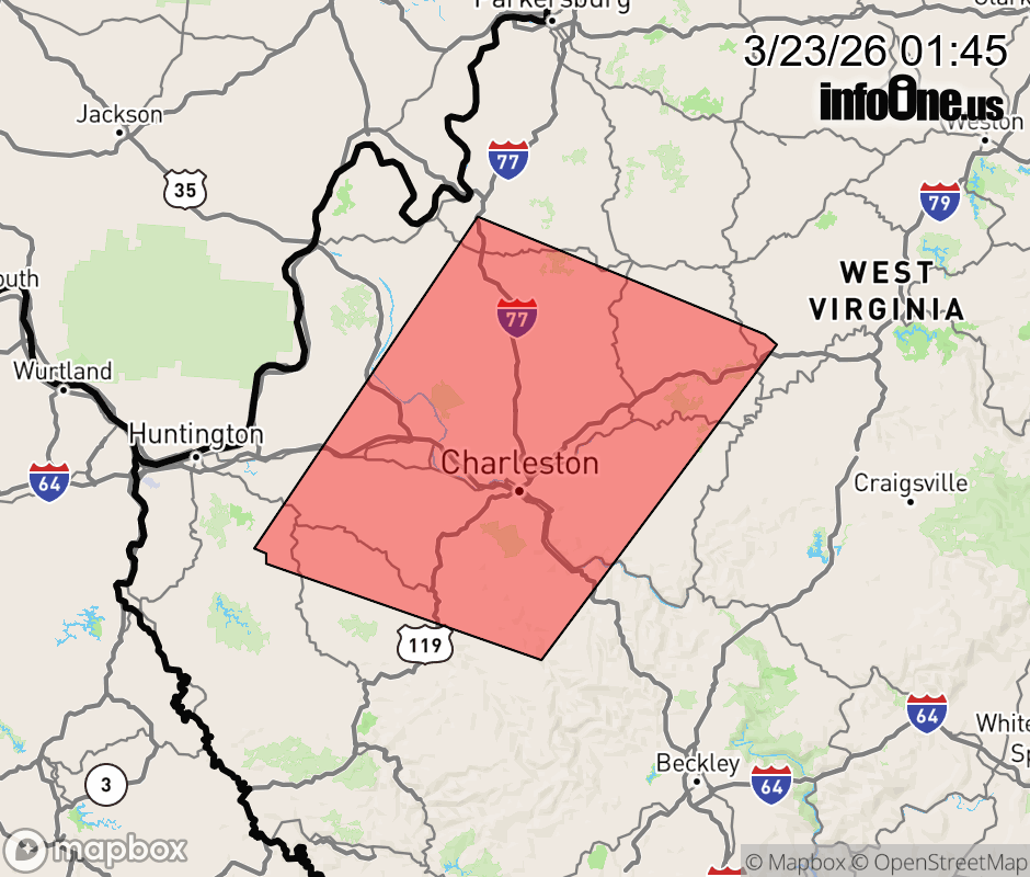 Canceled 3/23/26 2:15 AM Special Weather Statement issued March 23 at 1:44AM EDT by NWS Charleston WV At 144 AM EDT, Doppler radar was tracking strong thunderstorms along a line extending from Ripley to near Hamlin. Movement was east at 60 mph. HAZARD...Wind gusts up to 50 mph. SOURCE...Radar indicated. IMPACT...Gusty winds could knock down tree limbs and blow around unsecured objects. Locations impacted include... Charleston, Nitro, Ripley, Winfield, Hamlin, Jefferson, South Charleston, St. Albans, Dunbar, Hurricane, Sissonville, Milton, Chesapeake, Eleanor, Marmet, Belle, Buffalo, Clendenin, Cedar Grove, and Poca. This includes the following highways... Interstate 79 between mile markers 1 and 42. Interstate 77 in West Virginia between mile markers 96 and 143. Interstate 64 in West Virginia between mile markers 28 and 57. West Virginia Turnpike between mile markers 80 and 95. Route 119 between mile markers 53 and 80. ![]() |