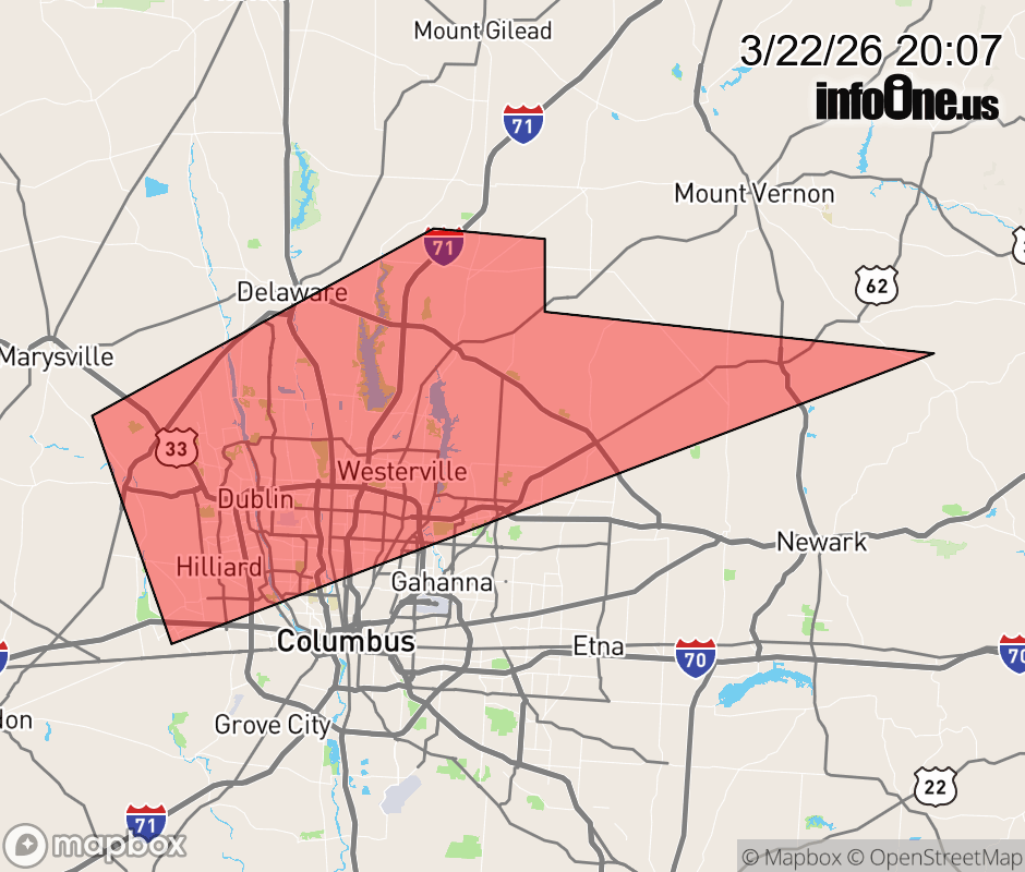 Canceled 3/22/26 8:25 PM Severe Thunderstorm Warning issued March 22 at 8:06PM EDT until March 22 at 8:45PM EDT by NWS Wilmington OH SVRILN The National Weather Service in Wilmington has issued a * Severe Thunderstorm Warning for... Northern Franklin County in central Ohio... Delaware County in central Ohio... Northwestern Licking County in central Ohio... Southeastern Union County in central Ohio... Northeastern Madison County in central Ohio... * Until 845 PM EDT. * At 805 PM EDT, a severe thunderstorm was located over Powell, moving east at 55 mph. HAZARD...Quarter size hail. SOURCE...Radar indicated. IMPACT...Minor damage to vehicles is possible. * Locations impacted include... Columbus, Dublin, Westerville, Delaware, Upper Arlington, Hilliard, Marysville, Worthington, Powell, Johnstown, Sunbury, Plain City, Utica, Minerva Park, New California, Polaris, Easton, Lake Darby, New Albany, and Shawnee Hills. This includes the following Interstates... I-70 in Ohio between mile markers 88 and 90. I-71 in Ohio between mile markers 114 and 138. ![]() |