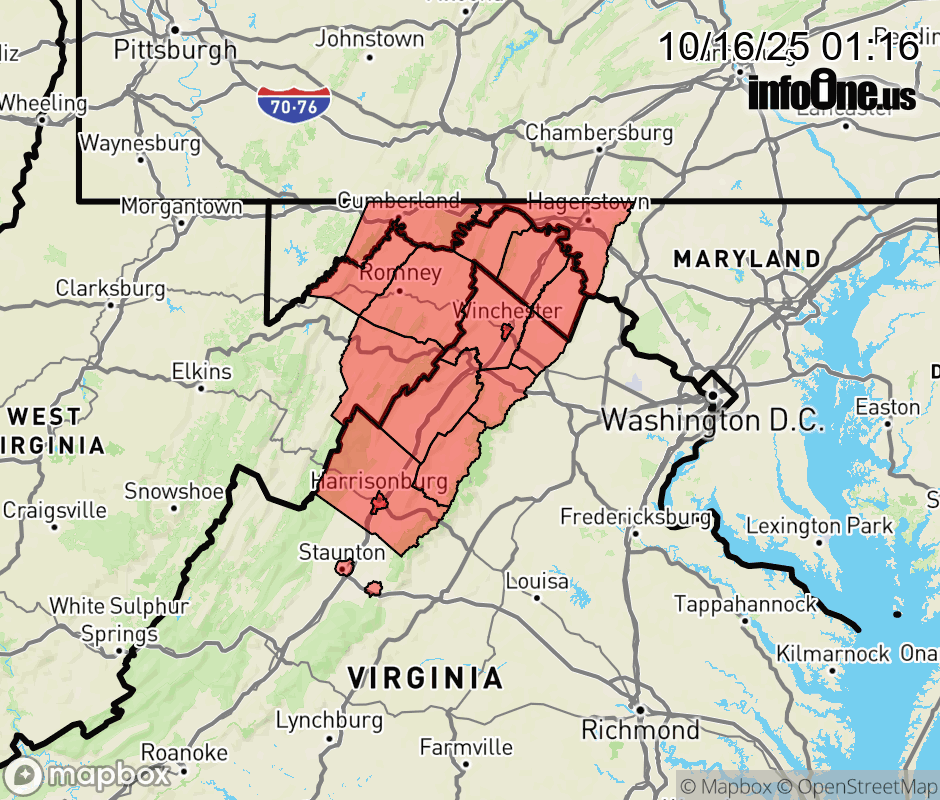 Canceled 10/16/25 8:20 AM Frost Advisory issued October 16 at 1:09AM EDT until October 17 at 9:00AM EDT by NWS Baltimore MD/Washington DC * WHAT... Temperatures as low as 32 will result in frost formation. * WHERE... Portions of north central and western Maryland, northwest and western Virginia, and eastern and panhandle West Virginia. * WHEN... From 2 AM to 9 AM EDT Friday. * IMPACTS... Frost could harm sensitive outdoor vegetation. Sensitive outdoor plants may be killed if left uncovered. ![]() |
