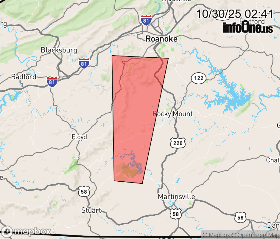 | Canceled 10/30/25 3:15 AM Special Weather Statement issued October 30 at 2:40AM EDT by NWS Blacksburg VA At 239 AM EDT, a strong storm was located near Fairy Stone State Park, or 7 miles southwest of Ferrum, moving north at 55 mph. Winds in excess of 30 mph are possible with this storm. Locations impacted include... Boones Mill... Copper Hill... Bent Mountain... Ferrum... Endicott... Fairy Stone State Park... and Poages Mill. Torrential rainfall is also occurring with this storm, and may cause localized flooding. Do not drive your vehicle through flooded roadways.  | |||||||||