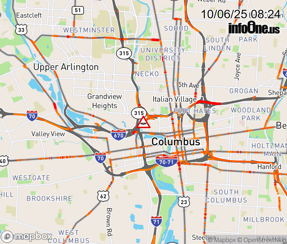The left shoulder is blocked on I-670 East at Neil Ave, due to a crash. Updated: Mon 10/6/25 8:24 AM EDT ![]() |