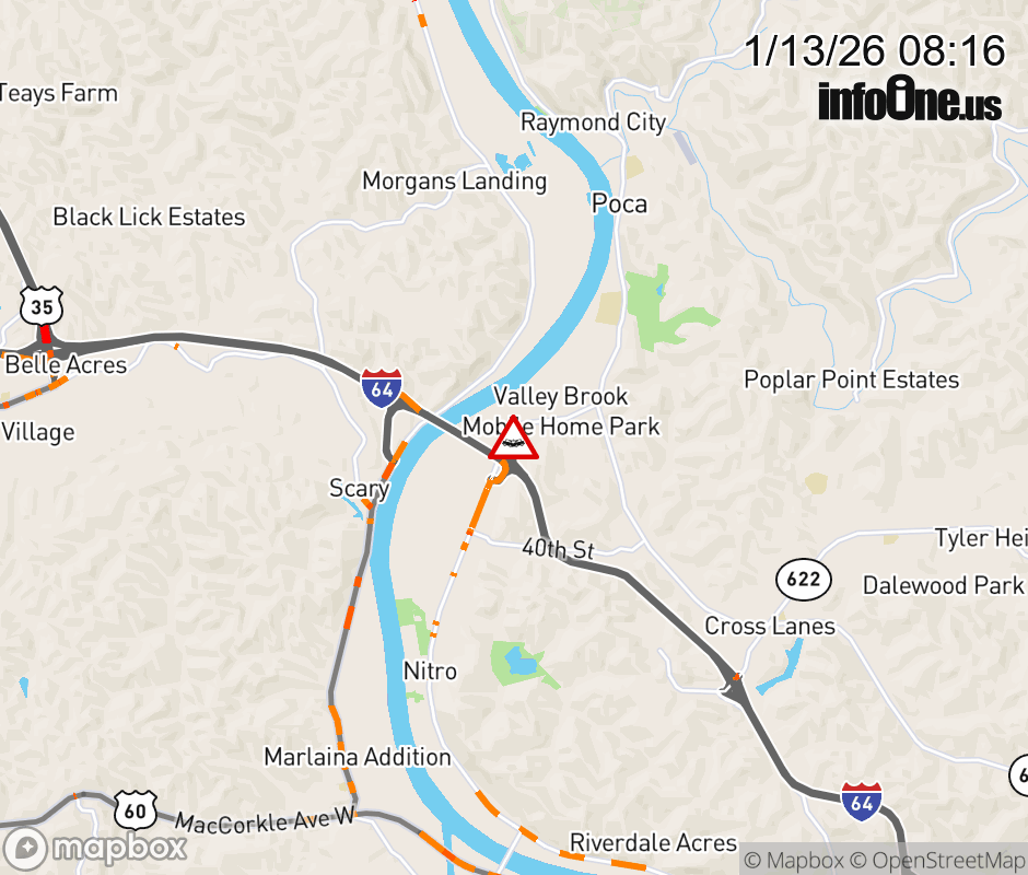Vehicle Crash on WV-25 (4304 1st Avenue). The southbound left lane is closed. Comments:blocking SB Left Turning Lane.Comments:blocking SB Left Lane and Turning Lane. Updated: Tue 1/13/26 8:16 AM EST ![]() Updated: Tue 1/13/26 8:16 AM EST |