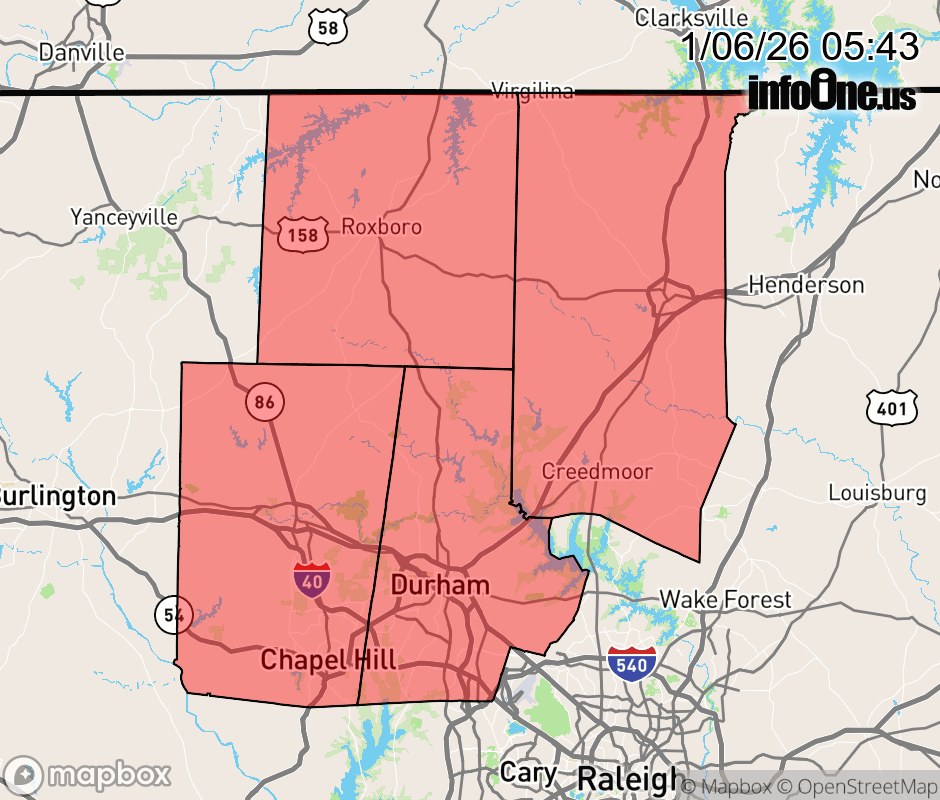 Canceled 1/6/26 9:00 AM Special Weather Statement issued January 6 at 5:37AM EST by NWS Raleigh NC Patchy dense fog has developed across portions of the northern Piedmont of central North Carolina this morning. Drivers are advised to use extra caution this morning, allow greater following distance, and allow extra time to reach your destination. Visibilities are expected to improve by 9 AM. ![]() |