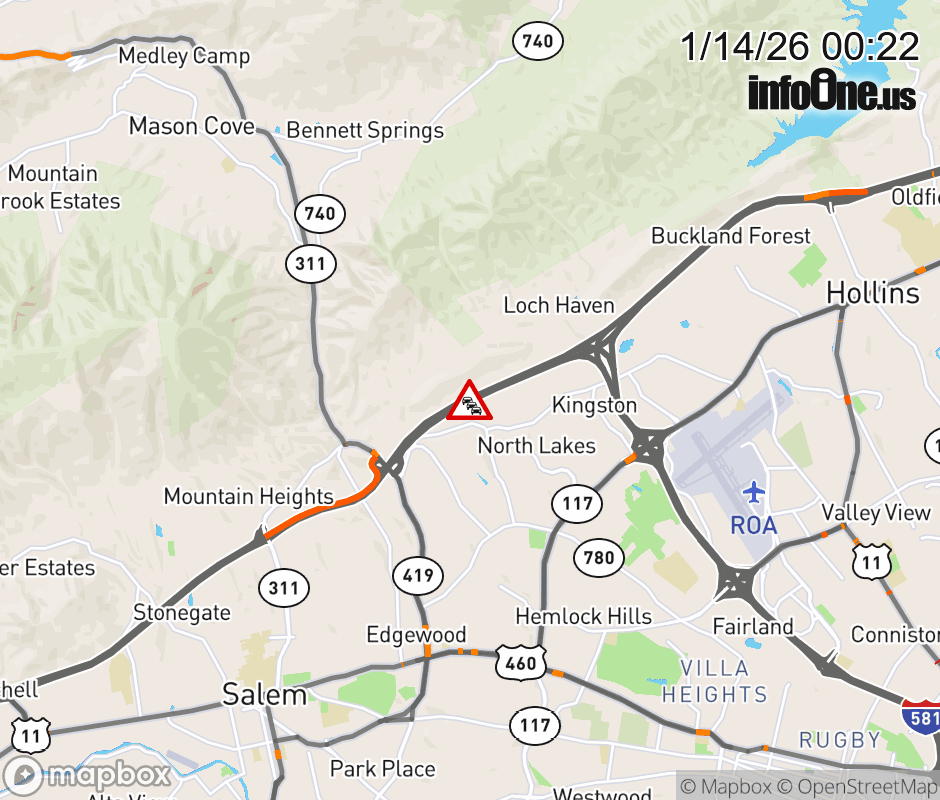 On I-81 at mile marker 142.5 in the County of Roanoke, motorists can expect delays due to a vehicle fire. The north right shoulder is closed. Updated: Wed 1/14/26 12:22 AM EST ![]() Updated: Wed 1/14/26 12:22 AM EST |