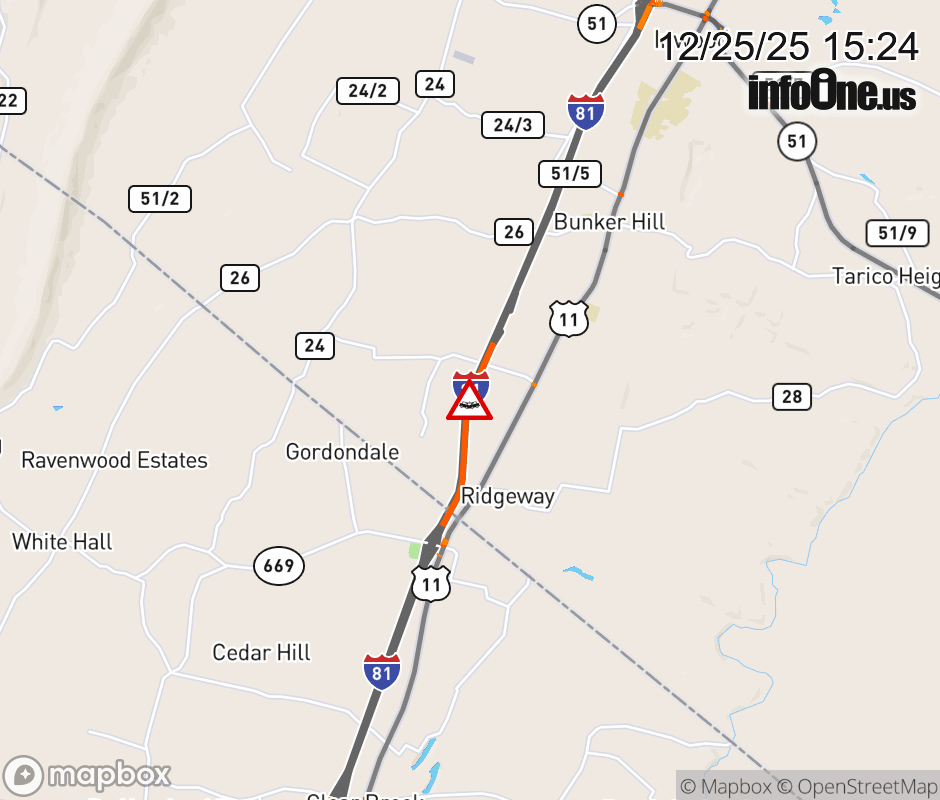 Vehicle Crash on I-81N at Mile Marker 1.0. The northbound right lane is closed. Updated: Thu 12/25/25 3:24 PM EST ![]() Updated: Thu 12/25/25 3:24 PM EST |