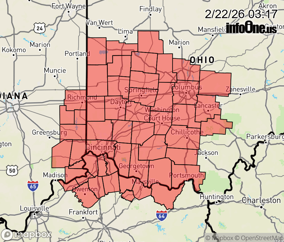 Canceled 2/22/26 11:00 AM Special Weather Statement issued February 22 at 3:15AM EST by NWS Wilmington OH Light snow will overspread the area from the northwest this morning. An increased coverage of snow showers is expected to develop this afternoon into the evening hours. Slick spots may develop on roads tonight as temperatures drop and northwest winds gust up to 30 mph. Coverage of snow showers is expected to decrease overnight before ending Monday morning. Most the area will see an accumulation of 1 to 2 inches. Locally higher amounts are possible in areas where heavier snow bands develop this afternoon into early evening. Roadways may become slick. If traveling, be alert, slow down and allow extra time to reach your destination. ![]() |