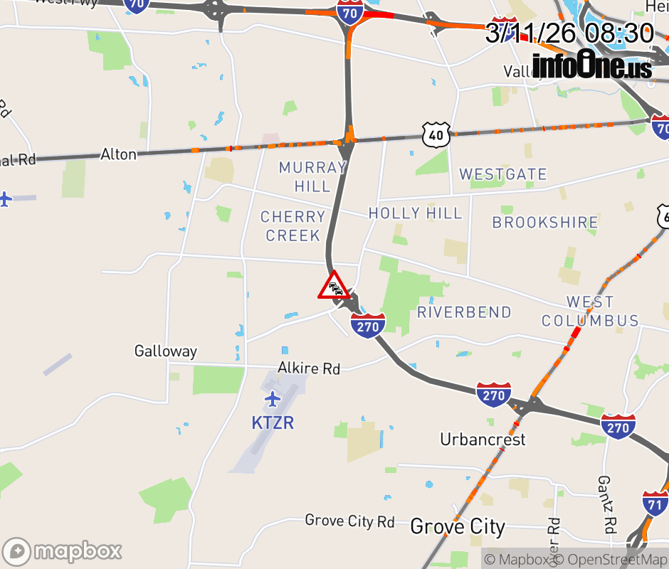 Expect lane closures on I-270 South at Georgesville Rd, due to debris on roadway. ![]() |