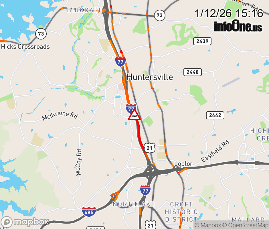 Crash on I-77 North Bound prior to exit 23, Gilead Rd. The right two lanes are blocked. ![]() |