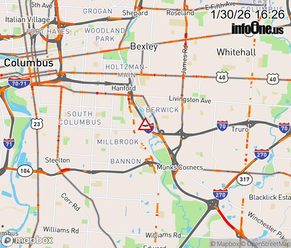 The right lane is blocked on I-70 East beyond Alum Creek Dr/Livingston Ave, due to a crash. ![]() |
