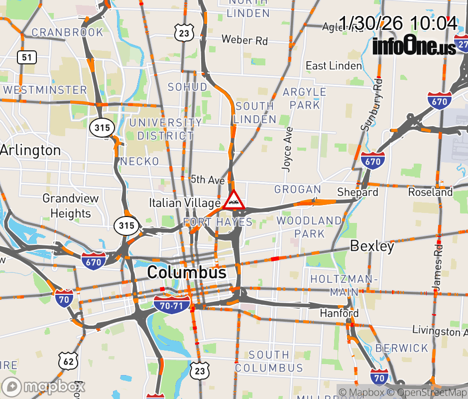 The left shoulder is blocked on I-71 North beyond I-670 West, due to a disabled vehicle. ![]() |